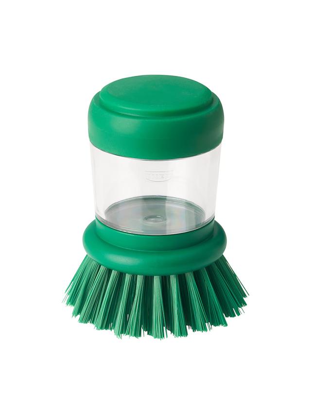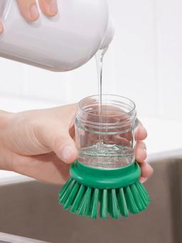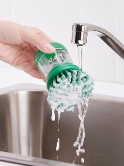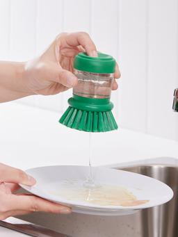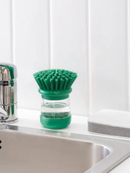 Дозатор для щётки для мытья посуды светло-зелёного цвета облегчает процесс мытья посуды. Эргономичный дизайн и прочная щётка делают его удобным для ежедневного использования. Можно разместить на столе или повесить.