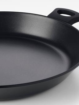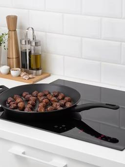 Сковорода HEMLAGAD — это большая посуда диаметром 32 см, идеально подходящая для приготовления пищи для большой семьи или больших порций. Она оснащена антипригарным покрытием, что позволяет готовить с меньшим количеством жира и облегчает мытье. Сковорода подходит для всех типов варочных панелей, включая индукционные. Области Применения: Для жарки и приготовления мяса, овощей, яиц или других крупных блюд. Технические Характеристики Цвет: Черная Материал: Алюминий (Основа) с антипригарным (Teflon) покрытием. Размеры: Диаметр: 32 см. Особенности: Антипригарное покрытие, подходит для индукционных плит, эргономичная ручка (не нагревается).