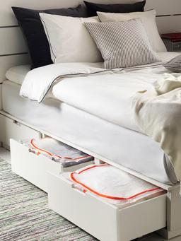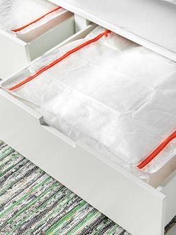 Чехол для хранения PÄRKLA подходит для хранения одежды, постельного белья или сезонных вещей. Благодаря сетчатому окошку, вы легко можете увидеть содержимое. Материал полипропилен защищает от пыли. Области Применения: Внутри шкафов, под кроватью или на верхних полках. Технические Характеристики Цвет: Белый Материал: 100% Полипропилен. Размеры: Ширина: 55 см, Глубина: 49 см, Высота: 19 см. Особенности: Защита от пыли, имеет сетчатую вставку, складывается до плоского состояния.