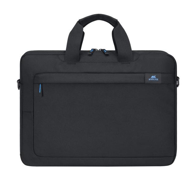 Сумка для ноутбука RivaCase 8036 16″ (Black) — тонкая и вместительная сумка, которая подходит для размещения личных вещей, от ноутбука и планшета до буклетов и книг. Некоторые преимущества модели: Защита от влаги. Сумка изготовлена из высококачественной водоотталкивающей ткани, которая надёжно защищает устройства от негативного воздействия влаги. Передний карман на молнии. В нём предусмотрено достаточно места для мелких предметов. Мягкие стенки. Они защищают вещи от повреждений, если сумка столкнётся с твёрдым предметом или её случайно уронят. Удобная переноска. Сумка оборудована широкими ручками, а съёмный регулируемый наплечный реме