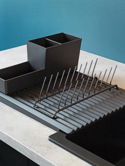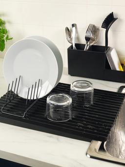 Двусторонний коврик для сушки посуды, размер — 40×31 см. Подходит для тарелок, чашек и столовых приборов. Хорошо впитывает влагу и защищает поверхность от воды. Легко складывается и не занимает много места.