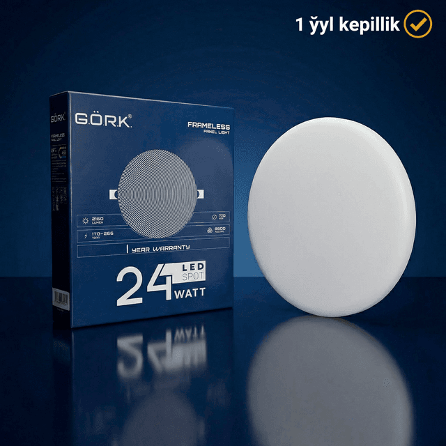 Флагманская безрамочная модель G.Ö.R.K. мощностью 24 Вт предназначена для создания мощного и эстетичного основного освещения. Конструкция Frameless обеспечивает плавный переход от поверхности потолка к источнику света, исключая лишние детали и рамки. Высокая мощность позволяет освещать просторные залы, холлы и коммерческие площади, сохраняя при этом лаконичный вид интерьера. Холодный белый свет (6500K) гарантирует максимальную яркость и четкость каждой детали в помещении. Мощность: 24 Вт (сверхъяркое основное освещение). Тип: Frameless (безрамочный / скрытый монтаж). Форма: R-Spot (круглый). Цветовая температура: 6500K (холодный дневной свет). Преимущества: Максимальная площадь рассеивания света, современный дизайн и высокая энергоэффективность.