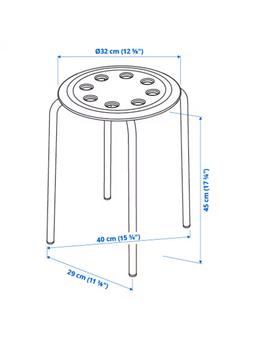 Белый стул высотой 45 см — лёгкий и прочный выбор для повседневного использования. Ширина (Ш): 40 см (это максимальный размер между ножками) Глубина (Г): 40 см (также максимальный размер между ножками) Высота (В): 45 см (высота сиденья) Дополнительная информация: Диаметр сиденья: 32 см Максимальная нагрузка: 100 кг