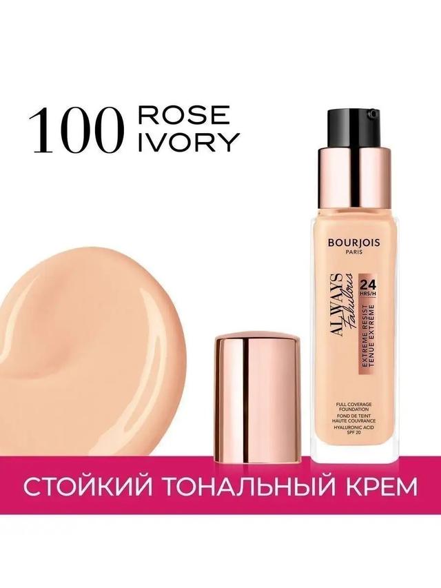 Характеристики Цвет: №100 ROSE IVORY Объем: 30ml Описание Оставайся безупречной весь день и всю ночь с новым стойким тональным кремом Always Fabulous 24 часа от Bourjois. Нежная французская текстура позволяет легко наносить крем, а плотное матовое покрытие скроет все несовершенства. Always Fabulous 24 часа выдержит темп твоей жизни: тон останется на месте в любой ситуации благодаря специально разработанной технологии Stay-In-Place. Формула с витамином E и SPF20 подарит лицу увлажнение и защиту. Средство украсит кожу естественным, мягким и натуральным оттенком. Подходит для всех типов кожи Способ применения Нанести средство спонжем на очищенную кожу лица, но возможно также нанесение кончиками пальцев или кистью, равномерно распределить.
