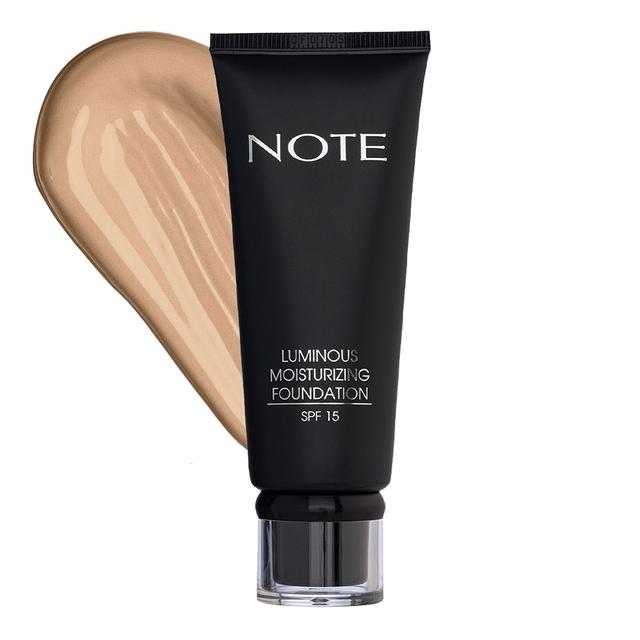 Увлажняющий тональный крем NOTE Luminous Moisturizing Foundation — №05 (30 мл) Тональный крем NOTE Luminous Moisturizing — идеальное решение для сухой, нормальной и зрелой кожи, склонной к потере влаги. Обогащенный маслом макадамии и экстрактом сладкого миндаля, он глубоко увлажняет кожу, выравнивает её структуру и дарит деликатное здоровое сияние. Крем эффективно скрывает несовершенства, не подчеркивая морщинки и шелушения. Оттенок №05 (Honey Beige) — это теплый медовый тон, который идеально подходит для кожи среднего оттенка, придавая ей легкий эффект естественного загара и сияющий вид. Солнцезащитный фактор SPF 15 обеспечивает надежную защиту от фотостарения в течение дня.