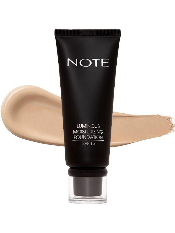 Увлажняющий тональный крем NOTE Luminous Moisturizing Foundation — №127 (30 мл) Тональный крем NOTE Luminous Moisturizing — это идеальный баланс декоративного покрытия и глубокого ухода. Благодаря маслам макадамии и сладкого миндаля, средство поддерживает оптимальный уровень влаги, предотвращая сухость и шелушение в течение дня. Крем выравнивает микрорельеф кожи, скрывает несовершенства и придает лицу здоровое атласное сияние. Оттенок №127 (Rich Tan) — глубокий золотисто-бежевый тон, специально разработанный для смуглой и загорелой кожи. Он ложится мягким ровным слоем, подчеркивая красоту темного оттенка кожи и придавая ей свежесть. Солнцезащитный фактор SPF 15 защищает кожу от фотостарения и вредного воздействия солнечных лучей.