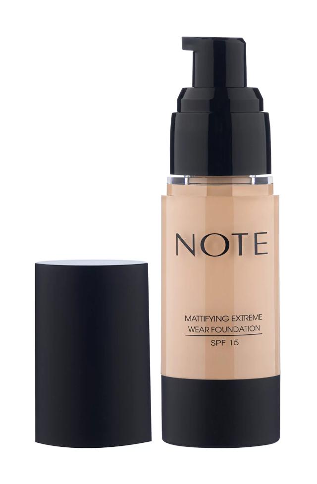 Матирующий тональный крем NOTE Mattifying Extreme Wear — №100 (30 мл) Тональный крем NOTE Mattifying Extreme Wear — экспертный выбор для обладательниц жирной и комбинированной кожи. Благодаря активному действию масла кедрового дерева и экстракта спиреи, крем помогает сбалансировать выработку себума, успокаивает кожу и эффективно маскирует поры, предотвращая появление нежелательного блеска. Оттенок №100 (Porcelain) — это самый светлый фарфоровый оттенок в линейке, созданный для обладательниц очень светлой, «мраморной» кожи. Крем обладает высокой плотностью покрытия, мгновенно выравнивает тон и создает безупречный бархатисто-матовый финиш. Солнцезащитный фактор SPF 15 обеспечивает надежную защиту от негативного воздействия ультрафиолета.