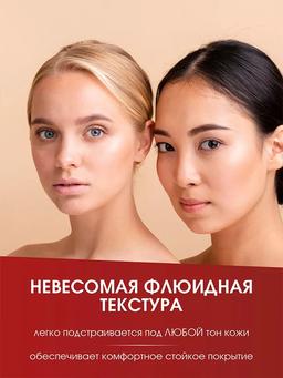Характеристики Цвет: №01 FAIR Объем: 30ml Описание Омолаживает, мгновенно придает сияющий, отдохнувший и заметно подтянутый вид коже. Светоотражающие частицы с эффектом "мягкого фокуса" визуально разглаживают морщинки, скрывают недостатки и возрастные изменения. Витамины и Центелла (азиатский щитолистник) в составе увлажняют кожу, возвращают ей гладкость и эластичность. Невесомая флюидная текстура легко подстраивается под любой тон кожи и обеспечивает комфортное стойкое покрытие. Содержит УФ-защиту SPF30. Дерматологически протестировано. Способ применения Нанесите на чистую кожу лица с помощью спонжа или косметической кисти.