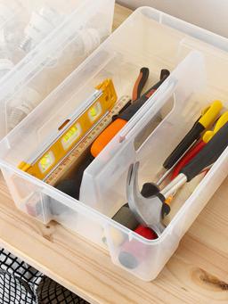 Этот прозрачный контейнер размером 37×25×12 см можно разделить на две секции объёмом 11 и 22 литра. Благодаря особой конструкции он удобен для хранения различных вещей. Изготовлен из прочного материала для долгосрочного использования.