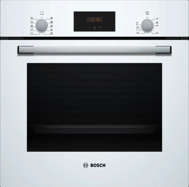 Встраиваемый духовой шкаф Bosch HBF512BW1T — это функциональный и стильный прибор, который идеально подходит для любой современной кухни. Выполненный в белом цвете, он легко интегрируется в светлый кухонный гарнитур, обеспечивая при этом превосходные результаты приготовления благодаря передовым технологиям Bosch. Модель HBF512BW1T имеет большой полезный объем 66 литров и предлагает 7 режимов нагрева, включая инновационный режим 3D Hotair. Эта технология гарантирует равномерное распределение тепла по всему объему камеры, позволяя готовить на трех уровнях одновременно без смешивания запахов и вкусов. Управление осуществляется с помощью удобных утапливаемых поворотных переключателей и яркого LED-дисплея. Духовой шкаф оснащен функцией AutoPilot 10, включающей 10 автоматических программ: вы выбираете блюдо и его вес, а прибор сам устанавливает оптимальную температуру и время, обеспечивая идеальный результат. Для удобства и безопасности предусмотрены: функция быстрого нагрева для моментального достижения нужной температуры, телескопические направляющие на одном уровне для безопасного извлечения противней, а также надежная блокировка от детей. Внутреннее покрытие GranitEnamel отличается прочностью и легкостью очистки.