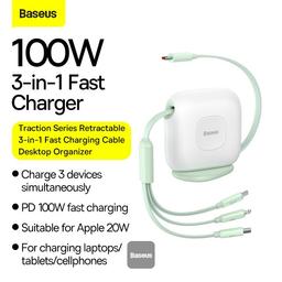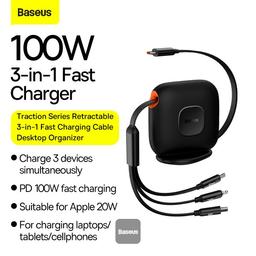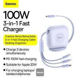 Выдвижной кабель для быстрой зарядки Baseus Traction Series 3-в-1, настольный органайзер Type-C на M+L+C, 100 Вт, 1,7 м