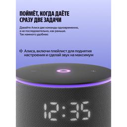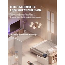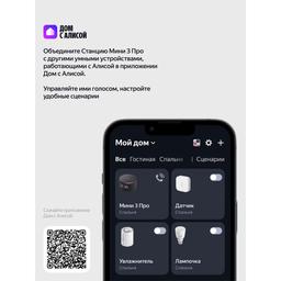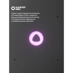 Яндекс Станция Мини 3 Про — первая умная колонка с Алисой, к которой можно подключать дополнительные модули, расширяя её привычные возможности. Слушайте музыку в классном качестве, носите Станцию с собой и превращайте в домашнюю климатическую систему. Ваш ассистент внутри Алиса с искусственным интеллектом в Станции Мини 3 Про умеет так много: она найдёт и включит, что попросите — музыку, аудиокниги, подкасты — и подберёт рекомендации по вашим интересам. Задавайте самые разные вопросы и получайте понятные и подробные ответы. Можете даже давать ей сразу несколько команд — Алиса поймёт их и выполнит, например: «Алиса, включи плейлист для поднятия настроения и сделай звук на максимум». Много пространства для любимой музыки Технические решения Яндекса делают звук в Станции Мини 3 Про удивительно громким, чистым и выразительным. ● Выразительное звучание: специально спроектированный динамик в 18 Вт с неодимовым магнитом и двумя пассивными излучателями усиливает звук и воспроизводит басы от 90 Гц. За счёт этого низкие частоты становятся заметнее, а любимые треки звучат ярче. ● Стереопара: объединяйте две Станции Мини 3 Про в стереопару, чтобы сделать звук в помещении ещё объёмнее. ● Режим Мультирум: включайте музыку на всех Яндекс Станциях в доме одновременно. Это удобно, например, когда перемещаетесь между комнатами. Просто скажите: «Алиса, включи музыку везде». Портативный аккумулятор Дополните Станцию Мини 3 Про портативным аккумулятором — и носите её с собой из комнаты в комнату и пользуйтесь где удобно⁵. Заряда хватит на 7 часов непрерывного прослушивания музыки⁶. Портативный аккумулятор не входит в комплект Яндекс Станции и приобретается отдельно. Управлением умным домом Станция Мини 3 Про поддерживает современные протоколы связи — Wi-Fi®, Zigbee™ и Matter™⁸. Подключайте к ней напрямую умные датчики, выключатели и другие устройства и управляйте ими голосом или с помощью удобных сценариев: «Алиса, выключи свет и включи шум дождя». Свет, который говорит без слов Помимо привычного LED-дисплея, у Станции Мини 3 Про есть анимированная функциональная LED-подсветка. Её свет и цвет сопровождают ваше общение с Алисой и меняются в такт музыке. Режим радионяни Поставьте умную колонку рядом с кроваткой малыша, и Алиса будет передавать все звуки из детской на телефон или другую Яндекс Станцию. Так будет проще услышать, когда ребёнок проснётся или заплачет. Функция «Шёпот» С Алисой можно говорить шёпотом, например, чтобы не разбудить близких. Если обратиться к Алисе шёпотом, она тоже понизит голос — точно так же, как это делают люди. Звонки на Станцию На умную колонку можно звонить из приложений Дом с Алисой или с другой Станции. Это выручит, когда не получается дозвониться на телефоны домашних, и очень удобно, если решили поговорить со всей семьей сразу. Сообщения на Станцию Когда нужно рассказать близким что-то важное, но неудобно звонить, передавайте сообщения на домашнюю колонку прямо из приложений Яндекса: Навигатора, Карт и Дома с Алисой, или между Станциями. Алиса прочитает их своим голосом. Портативный аккумулятор Портативный аккумулятор для Станции Мини 3 Про позволяет переносить умную колонку из комнаты в комнату и брать её с собой куда угодно, чтобы не расставаться с Алисой и любимой музыкой. Легко и надёжно крепится Благодаря магнитн