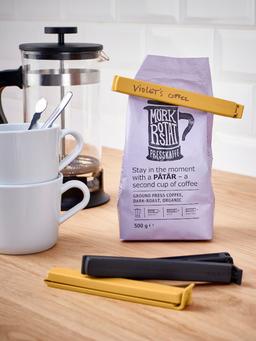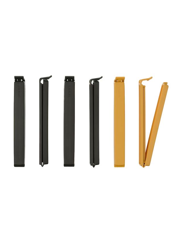 Этот набор из 6 зажимов в антрацитовом и тёмно-жёлтом цвете помогает сохранять свежесть продуктов, защищая открытые упаковки от попадания воздуха. Просты в использовании и предназначены для многократного применения.