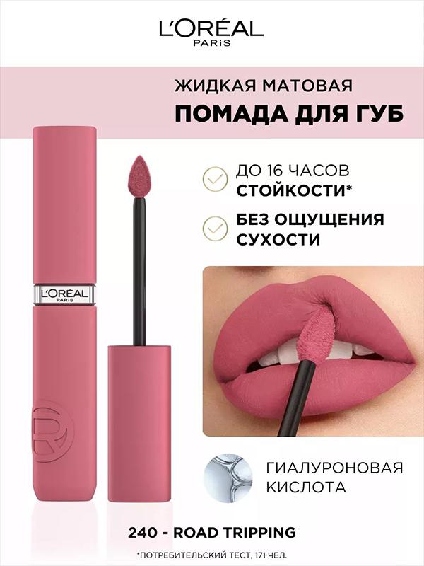 Характеристики Цвет: №240 ROAD TRIPPING Объем: 5ml Описание Жидкая матовая помада Infaillible – невесомое пудровое покрытие стойкостью до 16 часов без ощущения сухости. Инновационная формула с увеличенной концентрацией насыщенных пигментов и ухаживающими компонентами. Гиалуроновая кислота для эффекта объемных пудровых губ. Яркий стильный футляр с ультрамягким аппликатором для еще более чувственного и точного нанесения. Тот самый идеальный красный и широкая палитра трендовых нюдовых оттенков для каждой. А ты сможешь устоять? Ты этого достойна. Способ применения Начните нанесение от центра верхней губы по дуге купидона, затем двигайтесь по направлению к уголкам и заполните центр губ.