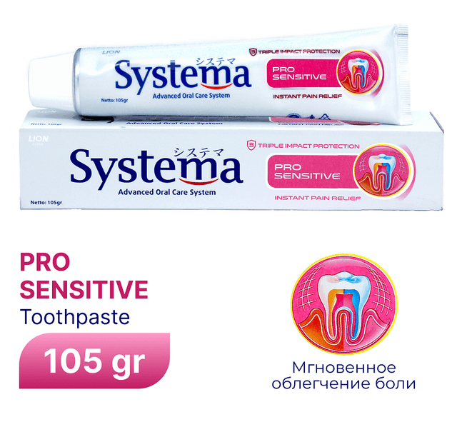 Зубная паста Systema Pro Sensitive предназначена для эффективного ухода за чувствительными зубами. Содержит нитрат калия, который снижает чувствительность зубной эмали, и фторид натрия для укрепления зубов и защиты от кариеса. Обладает мягкой текстурой и приятным вкусом, обеспечивая бережное очищение и длительное ощущение свежести.
