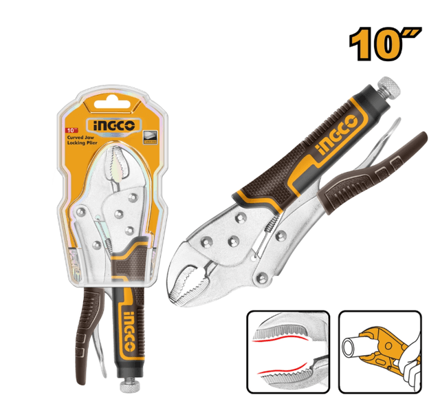 INGCO HCJLW0210 250 mm gysyjy gysgyçlary (kleşleri) tekiz görnüşli şaýlary tutmak we berkitmek üçin ulanylýar. Serediş işlerinde we agaç-slesar amallarynda ulanylýar. Berkitme işi bloklaýjy mehanizmiň aýratyn gurluşy saýasynda guralyň tutawaçlaryny gysmak arkaly amala aşyrylýar. Guralyň dodaklaryndaky dişler saýasynda şaý ygtybarly berkidilýär. Guralyň iki sany tutawajy bar: biri hereketli, beýlekisi bolsa hereketsizdir. Uzynlygy: 250 mm Materialy: nikel bilen örtülen, 0,5% uglerodly polat Gysyjy ýüzleriniň gatylygy: 38-48 HRC Gaplamasy: goşa blister