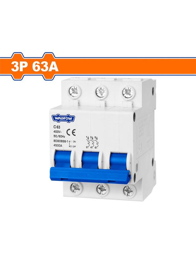 MCB 3P Nominal togy: 63A Öçürijilik ukyby: 4,5 kA Nominal napraženýesi: 400 W Öçüriş häsiýetnamasy: C görnüşli Polýus giňligi: 54 mm Fiksirlenen reýkanyň beýikligi: 35 mm Reňkli gutuda gaplanan