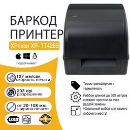 XPrinter XP-TT426B barkod printeri – bellikler, barkodlar we etiketkalar üçin ýokary öndürijilikli enjamdyr. Termotransfer we termoçap görnüşinde işleýär. Dükanda, ammarda, logistika, önümçilik we aptekada ulanmak üçin amatlydyr. Çap etmek tizligi 152 mm/s çenli, çözgüt 203 dpi. POS ulgamlaryna aňsat birleşýär we dürli sarp edilýän materiallar bilen işleýär.