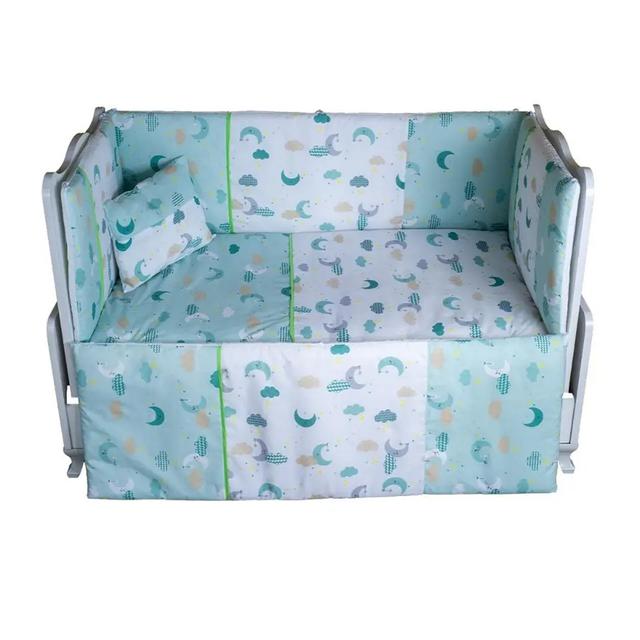 Elif-den çagalar krowady üçin bortik Elif-den çagalar krowady üçin bortik — bu çaganyň uky we dynç alyş wagtynda onuň howpsuzlygyny we oňaýlylygy üpjün edýän düşekçäniň aýrylmaz bölegidir. Täze doglan bäbekler üçin niýetlenen bortiklerimiz ýokary hile we howpsuzlyga aýratyn üns berlip döredildi. Bu germeç çaganyň krowadyny howpsuz saklar we ony tötänleýin urulmalardan gorar. Toplumdaky sany: 7 sany Düzümi: Pagta 100%, Poliefir 100% Dolduryjysy: Poliefir süýümi Goşmaça maglumat:Ilkinji gezek ulanmazdan ozal ýuwmak hökmandyr! Goýy reňkli zatlardan aýry ýuwmaly. 30°C-de örän näzik (delikat) ýuwuş tertibini ulanmaly. Agartmaly däl. Maşynyň barabanynda näzik sykmaly we guratmaly. Ütülemezlik maslahat berilýär. Himiki arassalaýyş ulanmaly däl.