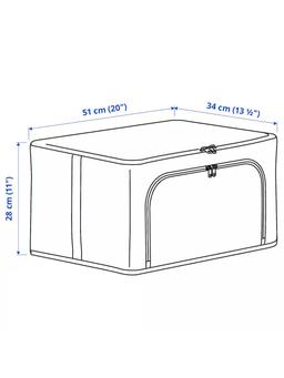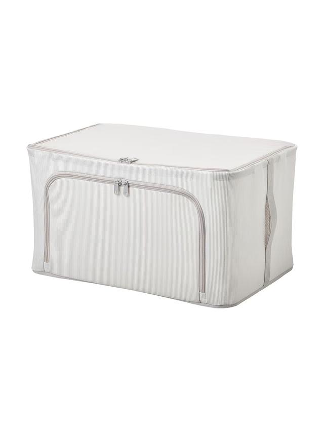 Mata materialdan tikilen, zolakly dizaýnly ak we çal reňkli saklaýyş gaby. Ölçegi 34x51x28 sm bolup, egin-eşik, oýunjak ýa-da beýleki öý goşlaryny tertipli ýerleşdirmäge amatlydyr. Ýumşak gurluşy bilen ýeňil göterilýär we boş wagty bukulyp saklanyp bilýär.