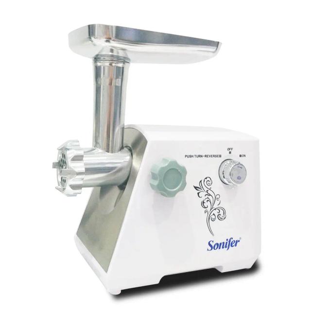 Elektrik eti ýylmaýjy Sonifer SF-5002 ownuk et taýýarlamak üçin niýetlenen öý enjamy. Kuwwaty 1200 Wt, ters funksiýa, dürli dokumalaryň we metal diskleriň ownuk eti üçin üç sany deşikli disk bilen enjamlaşdyrylandyr. Beden metal elementleri bolan plastmassadan ýasaldy we içinde mis motor oturdyldy. Süýşmeýän aýaklary bar we 220-240 V torda işleýär.