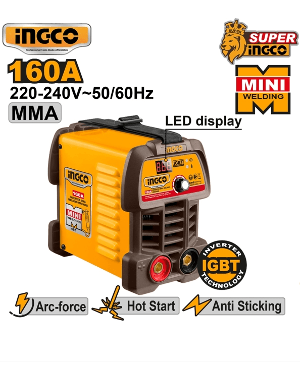 IGBT inwertor tehnologiýasy Giriş naprýajeniýesi: 1~220-240 V Ýygylygy: 50/60 Gs Çykyş togy: 15-130 A Iş sikli: 30% -de 130 A Swetodiod displeý Ýüksüz işleme naprýajeniýesi: 73 V Maksimal çykyş togy: 130 A Elektrodyň diametri: 1,6-3,2 mm Ýelmeşmä garşy / Gyzgyn başlangyç / Duganyň güýçlendirilmegi (Arc Force)