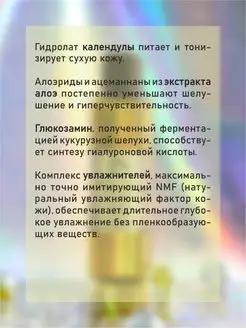 Aloe, kalendula we NMF toplumy bilen gury we duýgur deri üçin nemlendiriji tonik Näme üçin: Surfaceer ýüzünde film döretmezden deriniň çyglylygyny çuňňur dikeltmek. Dykyzlygy, gabygyny we duýgurlygy ýokarlandyrýar. Gialuron turşusynyň tebigy sintezini goldaýar. Näme çözýär: Natural Tebigy nemlendiriji faktoryň (NMF) düzüm bölekleriniň ýetmezçiligini doldurýar The Gözenekleri ýapmazdan derini içinden çuňňur nemlendirýär Sens Duýgurlygy we gyjyndyrmany peseldýär Dry Gury deriniň tonusyny we çeýeligini ýokarlandyrýar Own Öz gialuron kislotasynyň öndürilmegini höweslendirýär Ak inguwaş-ýuwaşdan çişmegi we rahatsyzlygy ýok edýär Işjeň komponentler we olaryň häsiýetleri: N NMF-e öýkünýän nemlendiriji toplum - deriniň päsgelçilik funksiýalaryny bozmazdan fiziologiki we uzak möhletli gidrasiýa üpjün edýär - aminokislotalaryň, şekerleriň we nemlendiriji faktoryň beýleki tebigy komponentleriniň ýetmezçiligini doldurýar End Kalendula gidrolaty - tonlar, gury derini iýmitlendirýär, çişmä garşy häsiýetlere eýe Oe Aloe ekstrakty (aloeridler we acemanlar) - ýalpaklygy kem-kemden azaldyň, derini ýumşadyň, gyjyndyrmany aýyryň we gorag päsgelçiligini güýçlendiriň Uc Glýukozamin (mekgejöwen gabygyndan) - öz gialuron kislotasynyň sintezini işjeňleşdirýär, deriniň gidrasiýa derejesini çuňlaşdyrýar Munuň üçin amatly: - Gury, duýgur we suwsuz deri - Zeper ýeten päsgelçilikli deri, gabyk we gaharlanma meýilli - Möwsümden daşary ideg ýa-da agressiw proseduralardan soň - Her gün irden we agşam ulanmak Nädip ulanmaly: Toneri pagta çukuryna çalyň we ýüzüň arassalanan derisini ýuwaşlyk bilen süpüriň. .Uwmaň, siňdiriň. Günde 2 gezek - irden we agşam ulanyň. Bellik: komponentlere aýratyn çydamsyzlyk mümkindir. Dowamly gaharlanma ýüze çyksa, ulanmagy bes ediň.