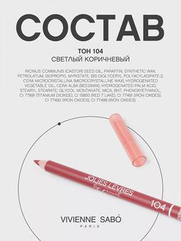 Aýratynlyklary Reňk: №104 СВЕТЛЫЙ КОРИЧНЕВЫЙ Göwrümi: 1.4gr Düşündiriş Jolies Levres dodak galamlary baý reňkleri sebäpli ulanmak gaty aňsat. Bir el degirmek bilen, bütin gün dowam etjek ajaýyp kontur ýa-da dodaklaryň doly görnüşini alarsyňyz. Ýeňil dokumasy pomada we bleskiň akmagyň öňüni alýar. Riňkleriň giň palitrasy size “öz” reňkini saýlamaga mümkinçilik berer! Ulanyş tertibi Dodaklary çyzyň we pomada ýa-da blesk bilen ýumşak garyşmak üçin çyzygy içerde garyşdyryň. Ora-da dodaklaryň tutuş ýüzüni galam bilen reňkläň.