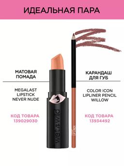 Aýratynlyklary Reňk: WILLOW Göwrümi: 1.4gr Düşündiriş Baý kremli dokumasy aňsatlyk bilen süýşýär we dodaklara ajaýyp ýapyşýar. Onuň kömegi bilen pomada hökman uzak wagtlap durar. Has uzyn we hatda täsir etmek üçin makiýaž işgärleriniň maslahatyny ulanyň: dodaklaryň ähli ýüzüne galam çalyň we dowamly reňkden lezzet alyň! Ulanyş tertibi Dodaklaryň konturyna galam çalyň, garyşdyryň. Has pomada çydamlylygy we reňk intensiwligi üçin dodaklaryň ähli ýüzüne galam çalyň.