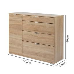 Gapyly we dört çekmeli giň komod Dört sany dürli ölçegdäki çekmesi bolan bu giň komod iri goşlary we dürli peýdaly maýda-çüýdeleri saklamaga mümkinçilik berýär. Gapdalynda bolsa içinde tekjeleri bolan gapy göz öňünde tutulandyr. Özboluşly metal tutawaçlary komoda döwrebap görnüş berýär. Komod aýajyklaryň üstünde gurnalýar. Şeýle komod ýatylýan otagda, myhmanhanada, aşhanada ýa-da çagalar otagynda tapylgysyz bolar. Aýratynlyklary: Material: LDSP. Gurluşy: 4 sany dürli ölçegdäki çekme we içinde tekjeli gapdal gapy. Furnitura: Özboluşly metal tutawaçlar. Aýratynlygy: Arassalyk işlerini aňsatlaşdyrmak üçin aýajykly dizaýn. Ölçegleri: Boýy: 90 sm. Ini: 120 sm. Çuňlugy: 40 sm. Eltip bermek we gurnamak: Aşgabat şäheri boýunça mugt.