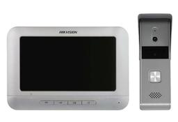 Hikvision markasy. Enjamyň görnüşi: Wideo interkom. LCD displeý 7 reňk "TFT LCD. Lightagtylyga duýgurlyk IR yşyklandyrylyşy. Elektrik üpjünçiligi DC 12V. Linza 0.3 MP 1.2.7x CMOS. Görüş burçy: Gorizontal: 66.2 °, Dik: 37.2 °. IP55 goragy.