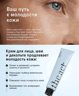 Peptidleriň toplumyna we ösümlik ekstarktlerine esaslanýan boýun we dekolte zolaklary üçin çyglandyryjy kremiň täsirli formulasy antioksidant we dikeldiş (regeneratiw) täsirini berýär, inçe derini işjeň dikeldýär, iýmitlendirýär we onuň tonusyny yzyna getirýär. Ysy: Gül ysy Göwrümi: 200 ml