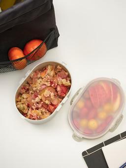 Bu açyk çal-bežewi reňkli nahar gutusy gury iýmitleri saklamak üçin niýetlenendir. Ýörite dizaýny bilen ol iýmitiňi uzak wagtlap tämiz we tertipli ýagdaýda saklamaga kömek edýär.
