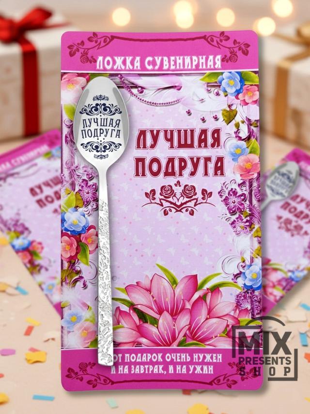 Ложка сувенирная "Лучшая подруга" на открытке (чайная)