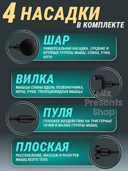 Массажёр перкуссионный для тела с 4 насадками