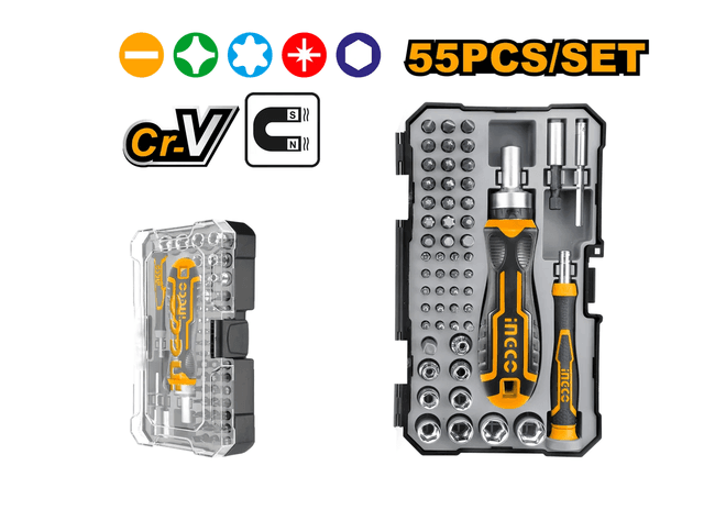 Набор бит с трещоточной отверткой 55шт HKSDB0558