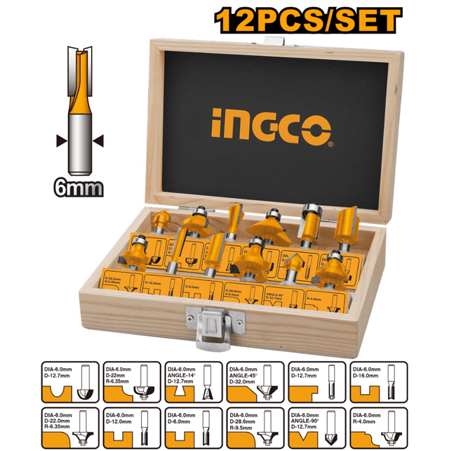 Agaç, MDF we fanera bilen işlemek üçin niýetlenendir. Ähli frezalar 6 mm-lik oken (hwostowik) bilen üpjün edilendir we berk agaç keýsde gaplanandyr. Aýratynlyklary: Frezalaryň sany: 12 sany Okunyň diametri: 6 mm Materialy: gaty garyndy (twerdyý splaw) Frezalaryň görnüşleri: göni, profilli, fasonly, kalýowoçnyý, galtelnyý, V-görnüşli we başgalar Gaplanyşy: agaç keýs Niýetlenişi: Agaç ussaçylyk işlerinde gyraňlary, oýuklary (paz), faskalary we bezeg elementlerini takyk we arassa işlemek üçin. Hojalyk we ýarym-hünärmen ulanmaga niýetlenen ajaýyp saýlaw.