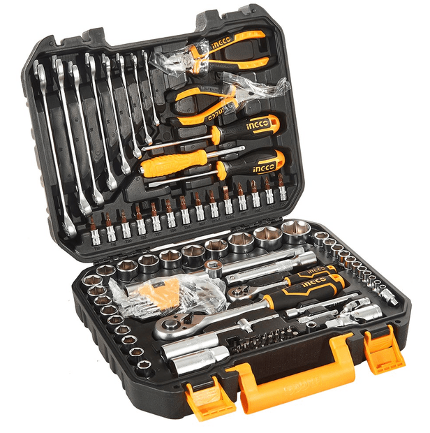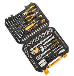 Gurallar toplumy, 100 sany 1 sany 1/2" treşotka açary, 45 dişli 18 sany 1/2" altyburçly golowka: 10-11-12-13-14-15-16-17-18-19-20-21-22-23-24-27-30-32mm 2 sany 1/2" uzadyjy: 125 mm (5") / 250 mm (10") 1 sany 1/2" Dr. uniwersal şarnir 2 sany 1/2" Dr. otlaýjy şem (sweça) golowkasy: 16mm we 21mm 1 sany 1/2" * 3/8" üç taraply adapter 1 sany 1/4" treşotka açary, 45 dişli 13 sany 1/4" altyburçly golowka: 4-4,5-5-5,5-6-7-8-9-10-11-12-13-14 2 sany 1/4" uzadyjy: 50 mm (2") / 100 mm (4") 1 sany 1/4" süýşýän "T" görnüşli gural 1 sany 1/4" Dr. uniwersal şarnir 8 sany kombinirlenen gaýka açary: 6-8-10-12-14-15-17-19 mm 1 sany 6" diagonal gapdal kesiji (kusaçka) 1 sany 6" inçe burunly gysgyçlar 1 sany SL5.5*100 otwertka 1 sany PH1*100 otwertka 14 sany bit-golowka: T10-T15-T20-T25-T27-T30-T35-SL4-SL5.5-SL6.5-PH1-PH2-PZ1-PZ2 9 sany altyburçly açar: 1,5-2-2,5-3-4-5-6-8-10 mm 20 sany 1/4" otwertka bitleri: SL3, SL4, SL5, SL6, PH0, PH1, PH2, PH3, PZ0, PZ1, PZ2, PZ3, T10, T15, T20, T30, H3, H4, H5, H6 25 mm 1 sany otwertka bitlerini saklaýjy 1 sany 1/4" * 150 mm aýlanýan tutawaç BMS (plastik keýs) içinde gaplanan
