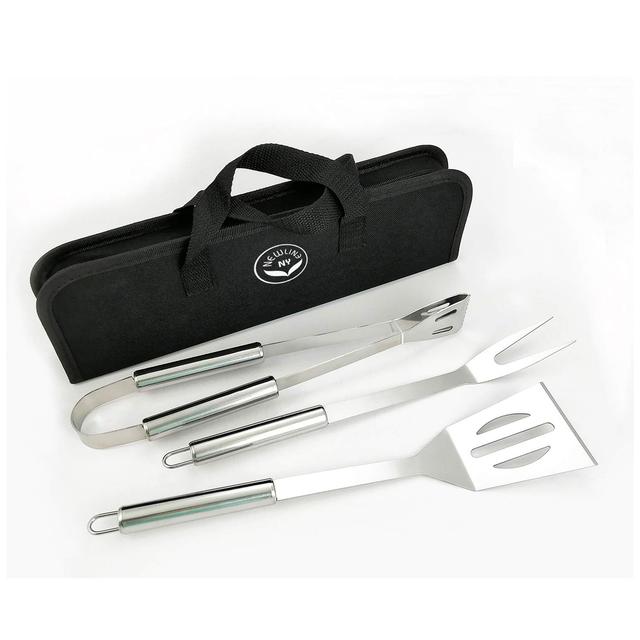 NewlineNY toplumy bilen otda nahar bişirmek prosesini has hünärmen derejesine we amatly ýagdaýa getiriň. Ýokary hilli poslamaýan polatdan (neržaweýka) ýasalan bu gurallar uzak ömürliligi, çydamlylygy we nepis dizaýny bilen tapawutlanýar. Toplumyň mazmuny: Gysgyç (Tong): Amatly gysyş mehanizmi steýkleri, göze-içileri ýa-da sosiskalary zeper ýetirmezden aňsatlyk bilen öwürmäge mümkinçilik berýär. Et çarşagy (Meat Fork): Ýiti uçlary eti keseniňizde ýa-da bişendigini barlaýanyňyzda uly bölekleri ygtybarly saklaýar. Lopatka (Spatula): Burger kotletlerini ýa-da näzik balyk etlerini öwürmek üçin iň amatly guraldyr. Esasy artykmaçlyklary: Poslamaýan polat: Poslamaýan we ýokary gyzgynlyga durnukly berk material. Ergonomik tutawaçlar: Uzyn tutawaçlar elleriňizi oduň gyzgynyndan goraýar we howpsuz aralygy üpjün edýär. Asmak üçin halkalar: Gurallary grilliň gyrasynda ýa-da aşhanada asyp goýmak örän amatlydyr. Aňsat arassalamak: Toplumy gap-gaç ýuwýan maşynda-da ýuwup bolýar.