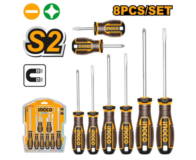 8 sany otwertkalar toplumy Tygynyň materialy: S2, tegelek okly (hwostowik) Topluma girýär: 1 sany SL44100 mm 1 sany SL5.55100 mm 1 sany SL6.5638 mm 1 sany SL6.56150 mm 1 sany PH15100 mm 1 sany PH2638 mm 1 sany PH26150 mm Goşa blisterde gaplanan
