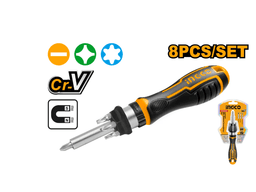 Отвертка со сменными насадками, трещоточная 8 в 1 INGCO AKISDS1728