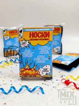 Sowgat otkrytkadaky erkek joraplar "Güýçli adamyň joraplary" (1 jübüt) Olçeg: 40-45 Cotton 50%, bamboo 40%, elastane 10%.