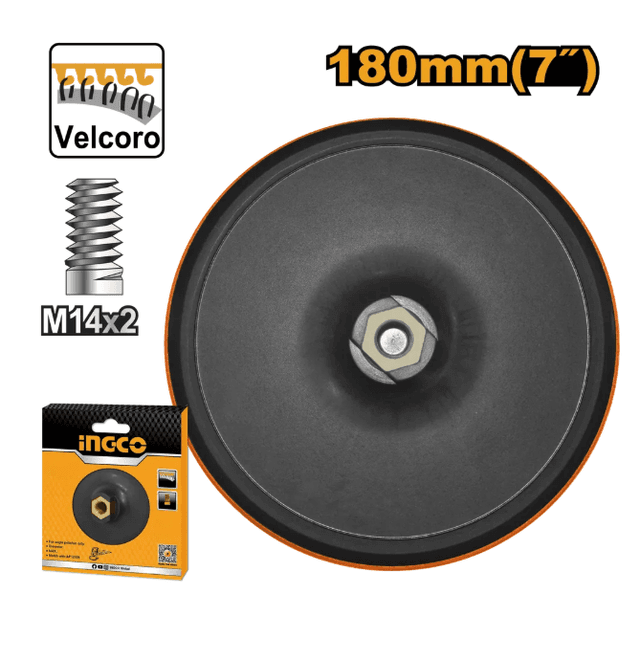 INGCO APP0111801 180 mm polirleme maşyny üçin daýanç tarelka polirleme maşynlary bilen bilelikde ulanylýar we polirleme nasadkalaryny hem-de şlifowka listlerini lipuçka (ýelmeşýän) arkaly berkitmek üçin niýetlenendir. Rezbasynyň ölçegi: M14 Diametri: 180 mm Agramy: Brutto - 0,3 kg. Gaplanan harydyň ölçegleri: Uzynlygy - 19 sm, Ini - 22 sm, Boýy - 4 sm