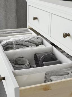 BAXNA tertipleşdirijisiniň bu giň ölçegi futbolkalary, ýygyldy şarflary ýa-da kiçi eşik toplumlaryny saklamak üçin amatlydyr. Şkafyň içinde köp ýer tutmazdan tertipli saklanmany üpjün edýär. Ulanmaly Ýerleri: Giň çekmejeler ýa-da şkaf tekjeleri. Tehniki Aýratynlyklary Reňki: Çal/Ak Materialy: 100% Poliester. Ölçegleri: Ini: 26 sm, Çuňlugy: 34 sm, Beýikligi: 10 sm. Aýratynlyklary: Ulagrak zatlar üçin giň, ýumşak material.