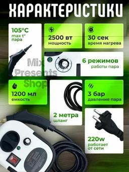 Пароочиститель универсальный для дома высокого давления (1.2 литра 2500W)