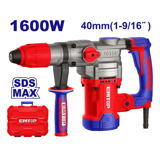 SDS-Max patronly güýçli tora birikdirilýän perforator, beton we daş bilen ýerine ýetirilýän agyr işler üçin amatlydyr. 10 J zarba güýjüne eýedir we ulanmaga amatly bolmagy üçin wibrasiýa garşy ulgam bilen enjamlaşdyrylandyr. Häsiýetnamalary: Kuwwaty: 1600 Wt Napryajeniýe: 220–240 W (50/60 Gs) Boş durandaky tizligi: 630 aýlaw/min Zarba ýygylygy: 3850 zarba/min Zarba güýji: 10 J Maksimal burawlama diametri: Beton — 40 mm çenli Koronka — 100 mm çenli Patronyň görnüşi: SDS-Max Goşmaça: Wibrasiýa garşy ulgam Dolotony blokirlemek (begelemek) ulgamy