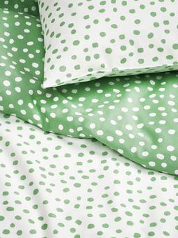 Пододеяльник и 2 наволочки IKEA BJÖRKGRÅMAL зеленый/белый/в горошек, 240x220/50x80 см