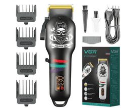 Görnüşi: Doly göwrümli simsiz saç syryjy (Clipper). Kuwwaty: 10 Wt. Bu model VGR brendiniň iň güýçli meşinkalarynyň biridir, galyň we kyn saçlary hem bökdençsiz syrýar. Motoryň tizligi: Minutda 6500–7000 aýlaw edýär, bu bolsa saçyň bir gezekde arassa kesilmegini üpjün edýär. Sazlaýjy rycag: Gapdalyndaky rycag arkaly nasadkasyz saçyň gysgalygyny 0.8 mm-den 2.0 mm-e çenli sazlap bolýar. Iýmitlenişi: 2000 mAh litiý akkumulyatory. Işleýiş wagty: Bir zarýadda 180–200 minuta çenli. Zarýad beriş wagty: Takmynan 3 sagat. LED displeý: Zarýadyň göterimini (%) we ýaglamak wagtyny görkezýär.