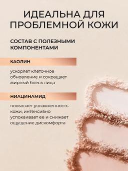 Aýratynlyklary Reňk: TRANSLUCENT Göwrümi: 6gr Düşündiriş • Gülgüne glina derini tonlaýar we ýygyrtlary ýazýar. • Niasinamid (B3 witamini): nemlendirýär, gorag funksiýalaryny güýçlendirýär we derini rahatlandyrýar. ÜSTÜNLIKLER: • ýüpek dokumasy, • aladaly kompozisiýa (gülgüne toýun we niasinamid), • gözenekleri ýapmaýar, • gipoallergen, • durnukly, • ykjam gaplama Ulanyş tertibi Bu pudradan dykyz örtük almak isleseňiz, gubka bilen çalyň. Ýeňil, perde ýaly örtügi halaýan bolsaňyz, pudry çotgasy bilen çalyň.