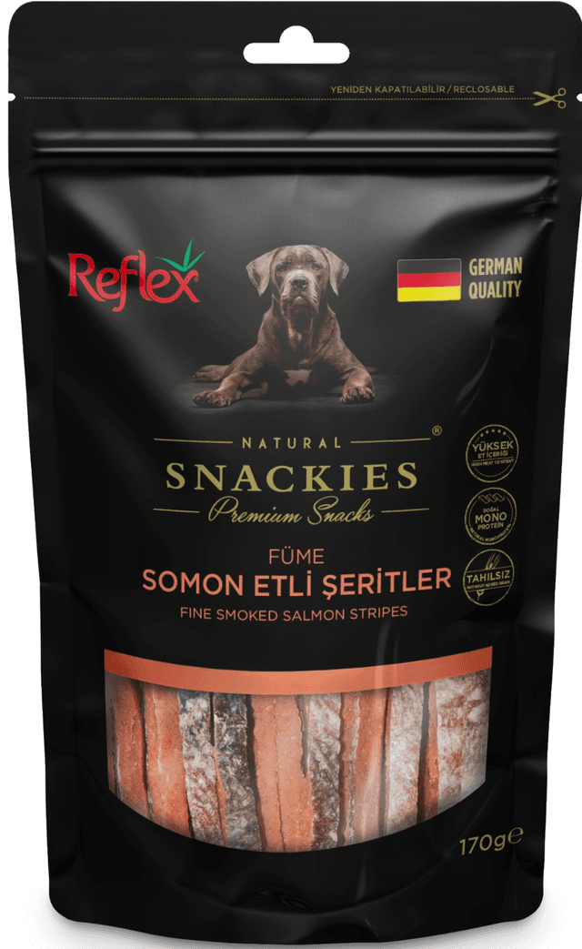 Reflex snackies лакомства для собак полоски из копчёного лосося 170гр